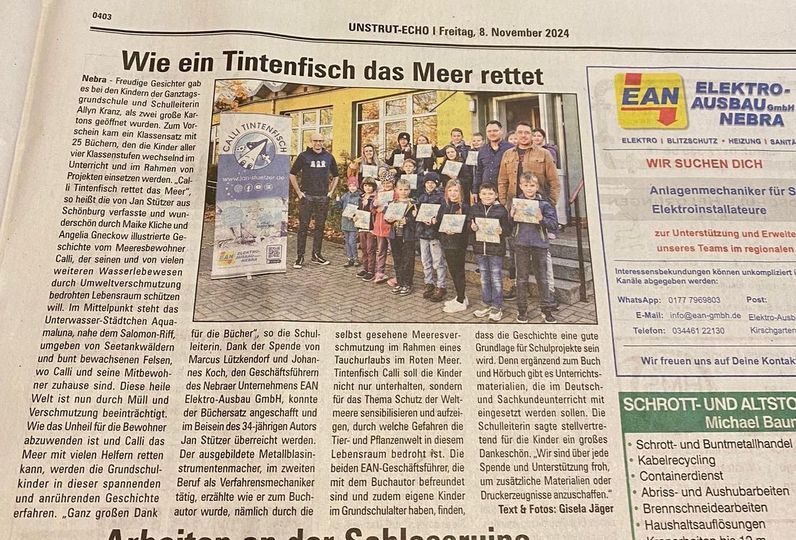 Ein Unternehmen erwirbt einen Klassensatz des Buchs „Calli Tintenfisch rettet das Meer“ und spendet es einer Grundschule, Bildungseinrichtung etc. seiner Wahl.